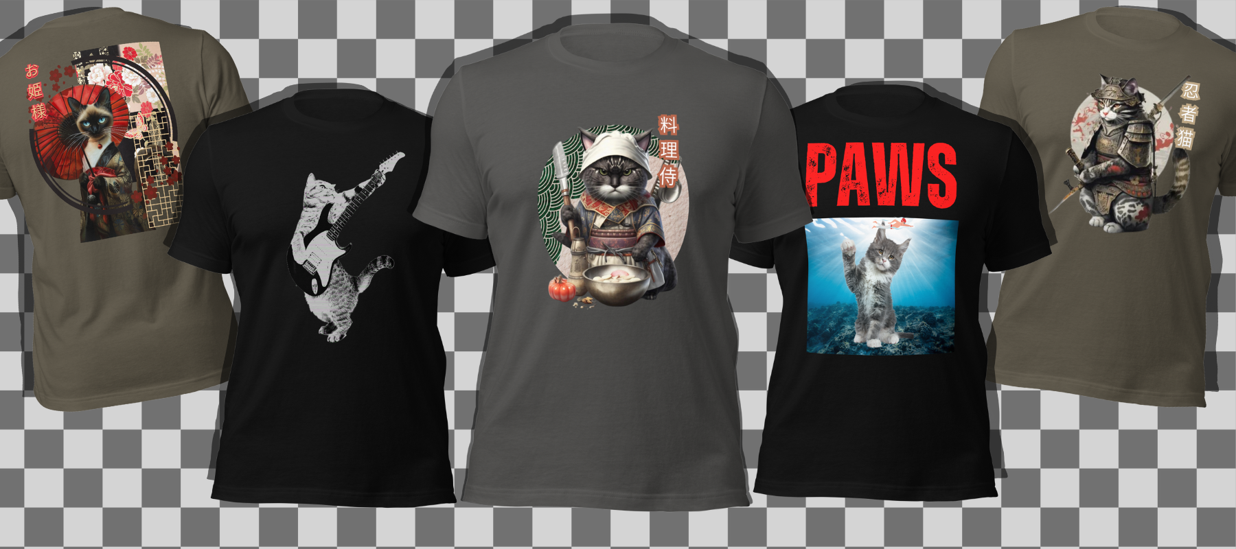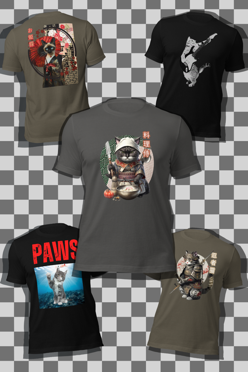 Japanese Kawaii Samurai Cat T-Shirt